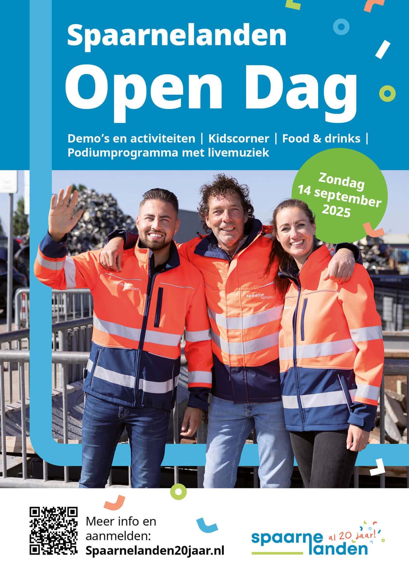 Tijdens de Open Dag viert Spaarnelanden het jubileum met medewerkers, partners, bewoners én andere geïnteresseerden. Met trots kijkt Spaarnelanden terug op twee decennia waarin het zich heeft ingezet voor een duurzame toekomst. Het bedrijf ontstond in 2005 uit zelfstandige activiteiten binnen de Gemeente Haarlem. In de afgelopen twintig jaar groeide het uit tot een toonaangevend bedrijf op gebied van duurzaamheid en leefbaarheid in Haarlem en Zandvoort.