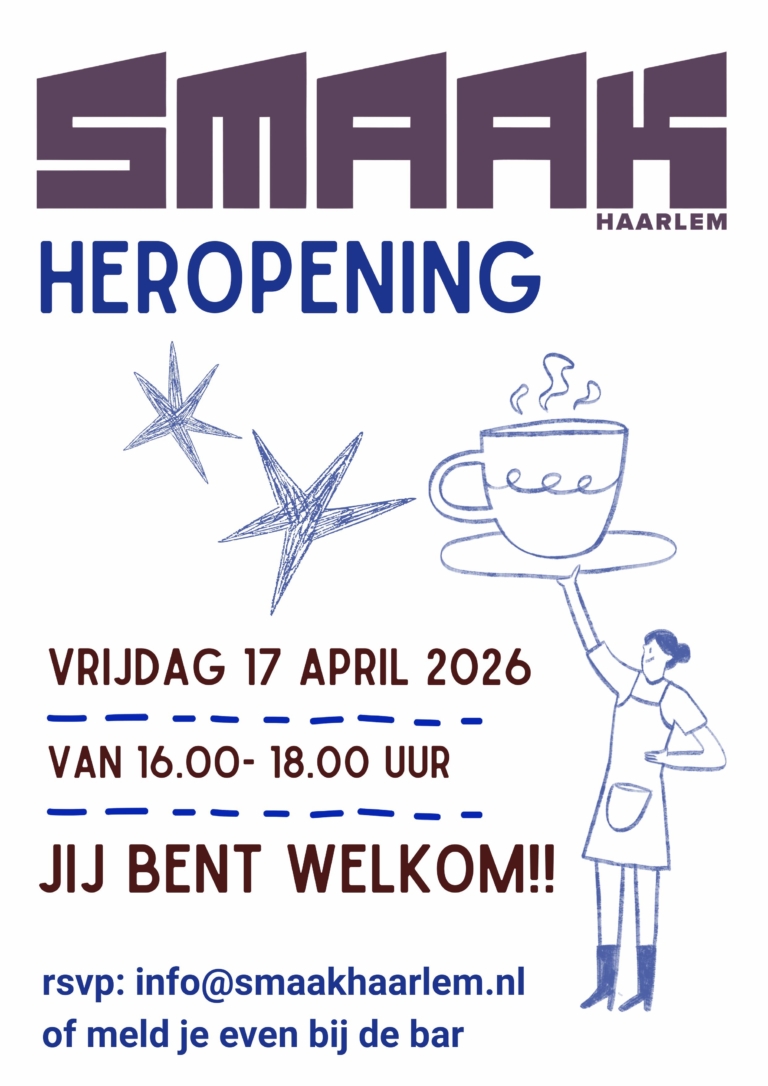 Aankomende vrijdag 17 april is van 16.00 uur tot 18.00 uur de heropeningsborrel van restaurant SMAAK, gevestigd op het MAAK-terrein. Je bent van harte welkom.