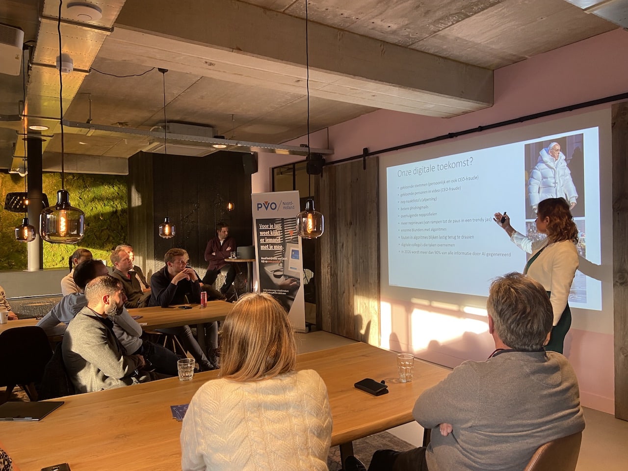 Er is met elkaar gesproken over hoe je jezelf én je medewerkers kunt beschermen tegen cybercrime en hoe makkelijk je te manipuleren bent met data. Ethical hacker Jeroen van MEOS IT vulde het verhaal van Maria aan. Er zijn een aantal tips gegeven om ervoor te zorgen dat je wachtwoord lastiger of zelfs onmogelijk te hacken is. Ook de digitale toekomst en bijbehorende risico’s en kansen kwamen aan bod.