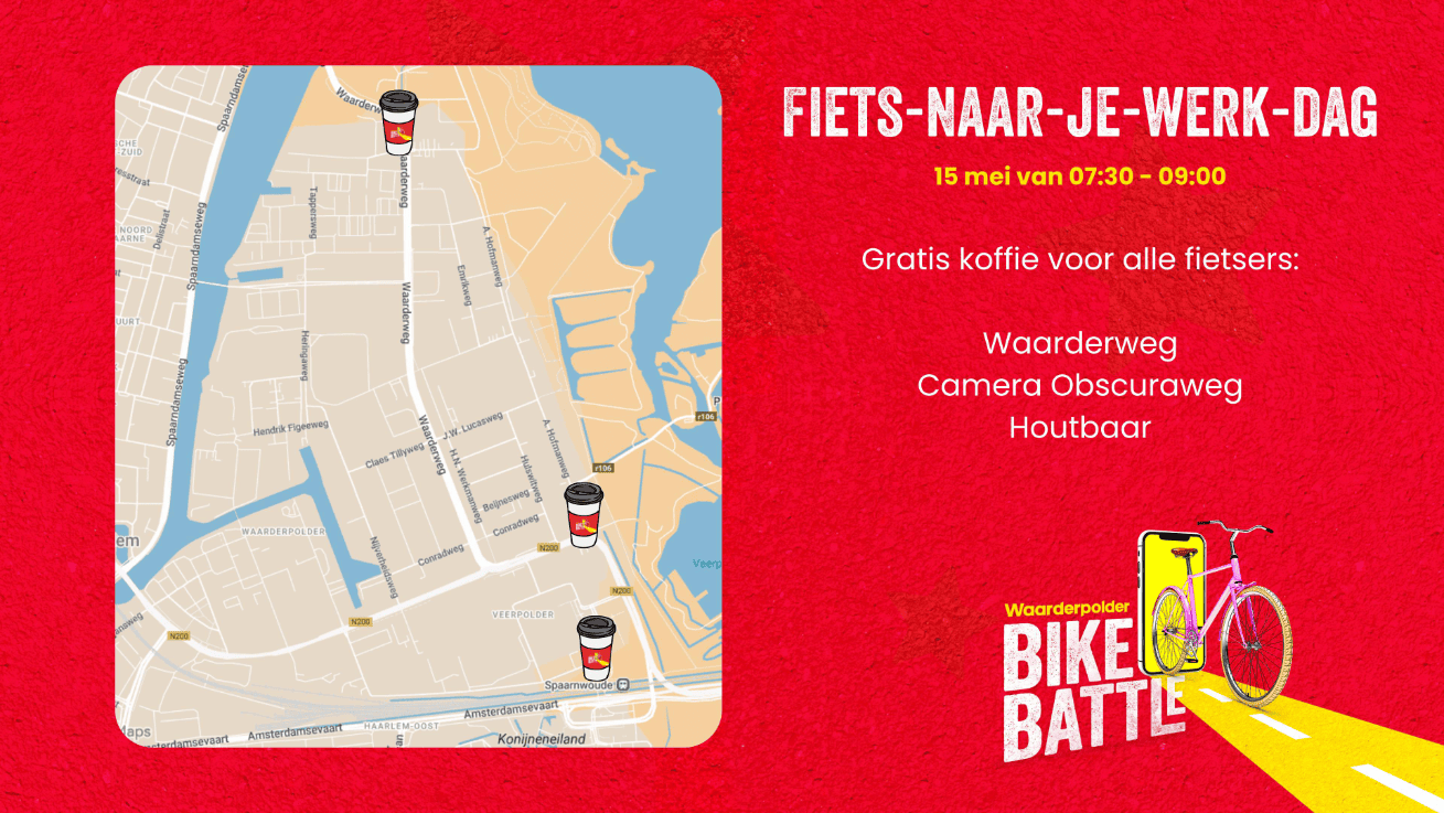 Donderdag 15 mei is de landelijke Fiets-naar-je-werk-dag! Het perfecte moment om de auto te laten staan en de fiets te pakken. Zeker omdat we in de Waarderpolder op verschillende plekken gratis koffie aanbieden aan fietsers. Een extra boost voor een productieve werkdag!