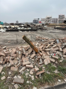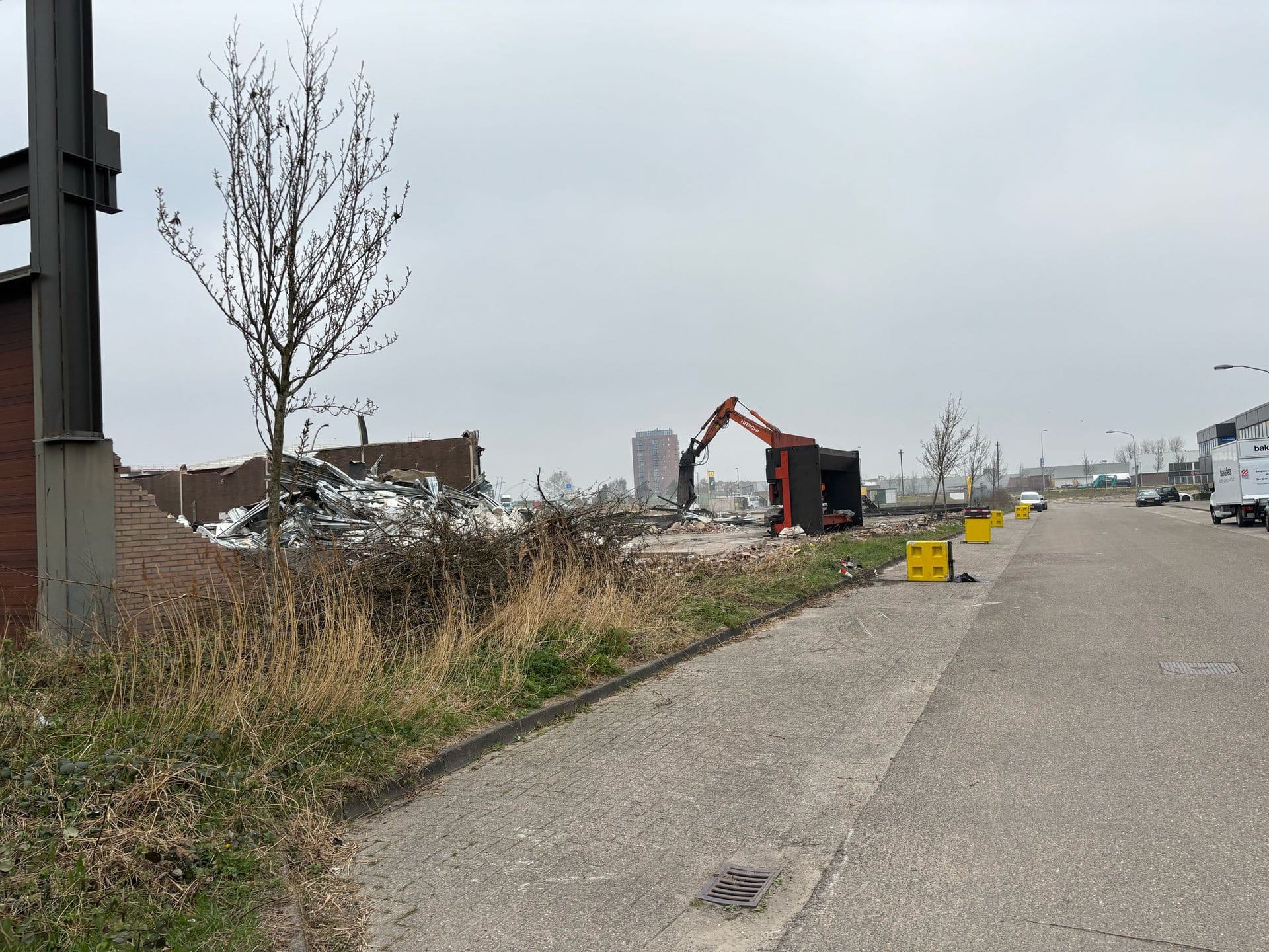 Uit de *bomenbank van Parkmanagement Waarderpolder zijn enkele jaren geleden, op verzoek van ondernemers aan de Kuipersweg, 12 bomen geplant langs de gevel van Prins Staal. Op dit moment worden daar sloopwerkzaamheden uitgevoerd en helaas heeft een aantal van de bomen dit niet overleefd.