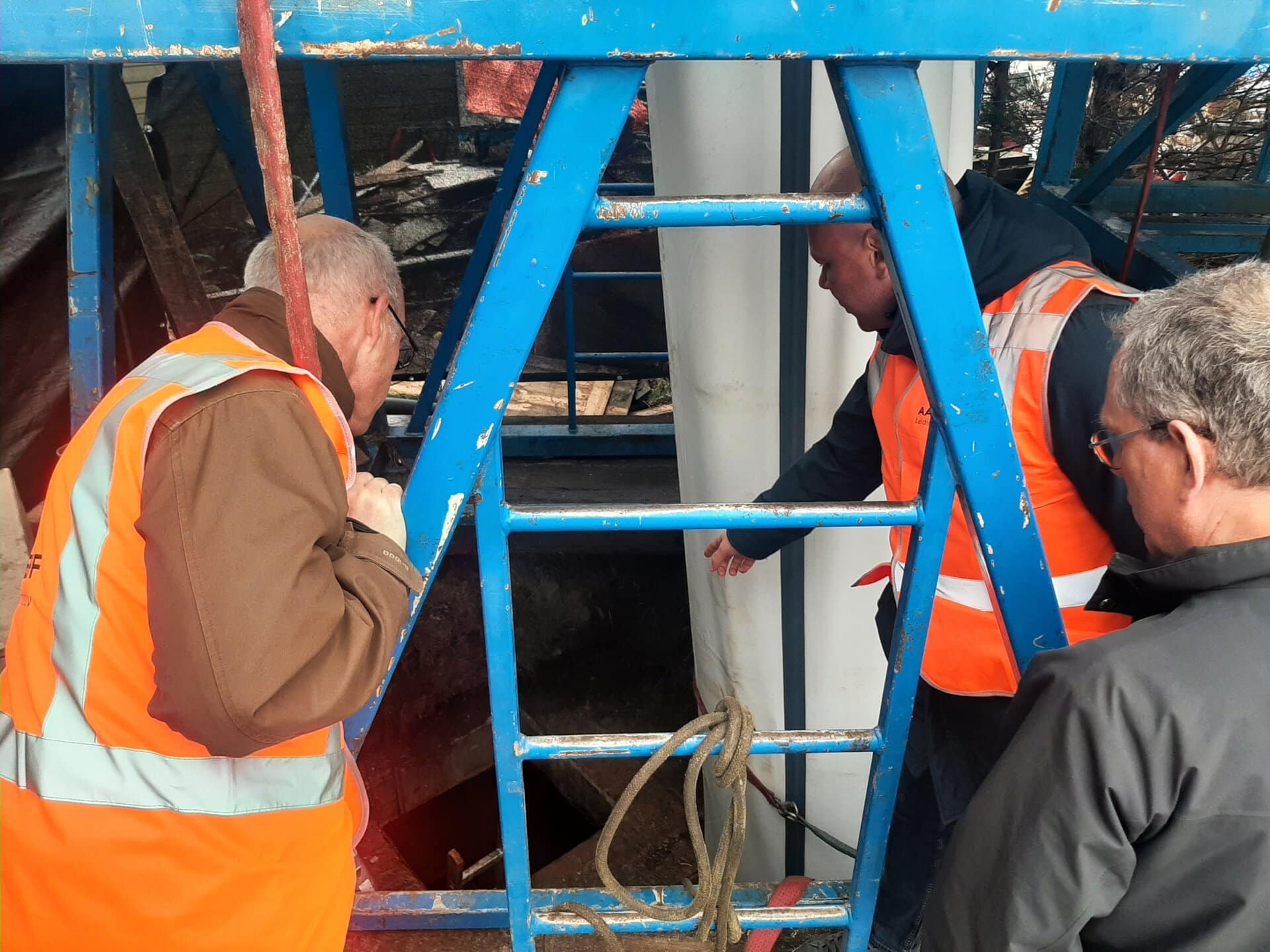 Dinsdag 21 maart was Parkmanagement Waarderpolder aanwezig bij een kijkmoment, georganiseerd door de aannemer die de renovatiewerkzaamheden aan het riool uitvoert. Op bijgaande foto zie je een locatie aan het Spaarne waar al het afvalwater samenkomt en door 2 grote zinkers onder het Spaarne door naar de waterzuivering in de Waarderpolder stroomt.