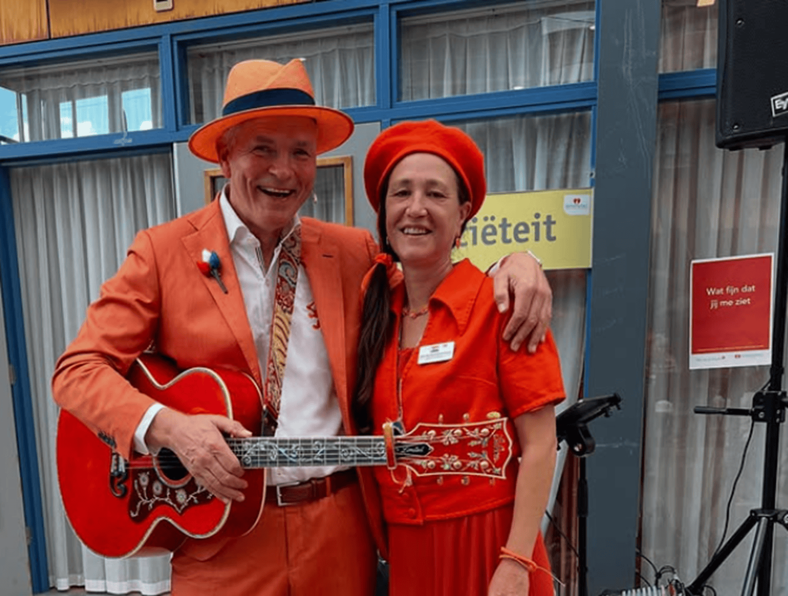Tijdens een vrijwilligersdag bij verzorgingshuis Schoterhof vierden bewoners en vrijwilligers samen een onvergetelijke Oranjedag. Met pannenkoeken, oud-Hollandse spelletjes, dansen met de Oranje Man en een ritje in de paardentram zorgden ze voor veel verbinding, beweging en blije gezichten. Schoterhof waardeerde de inzet en de warme aanwezigheid van de vrijwilligers. Dit is precies waar het initiatief voor staat: medewerkers die in werktijd een helpende en verbindende rol opnemen en een ‘goede buur’ zijn.