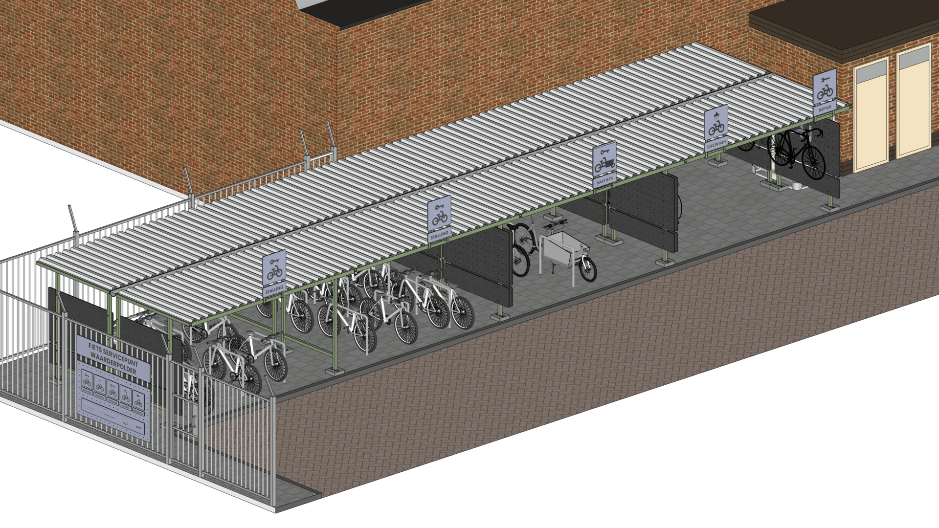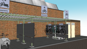 Op woensdag 9 april van 16.00 tot 17.00 uur wordt het Fietsservicepunt Waarderpolder op het MAAK-terrein officieel geopend door wethouder Bas van Leeuwen (mobiliteit). Het fietsservicepunt bestaat uit een overdekte stalling, een bike-repair met workshops om zelf reparaties uit te voeren en een bike-wash met opgevangen regenwater. Het slimme ontwerp van La Bolleur is gemaakt van duurzame materialen en modulair, wat het toepasbaar maakt voor zowel grote als kleine bedrijven.