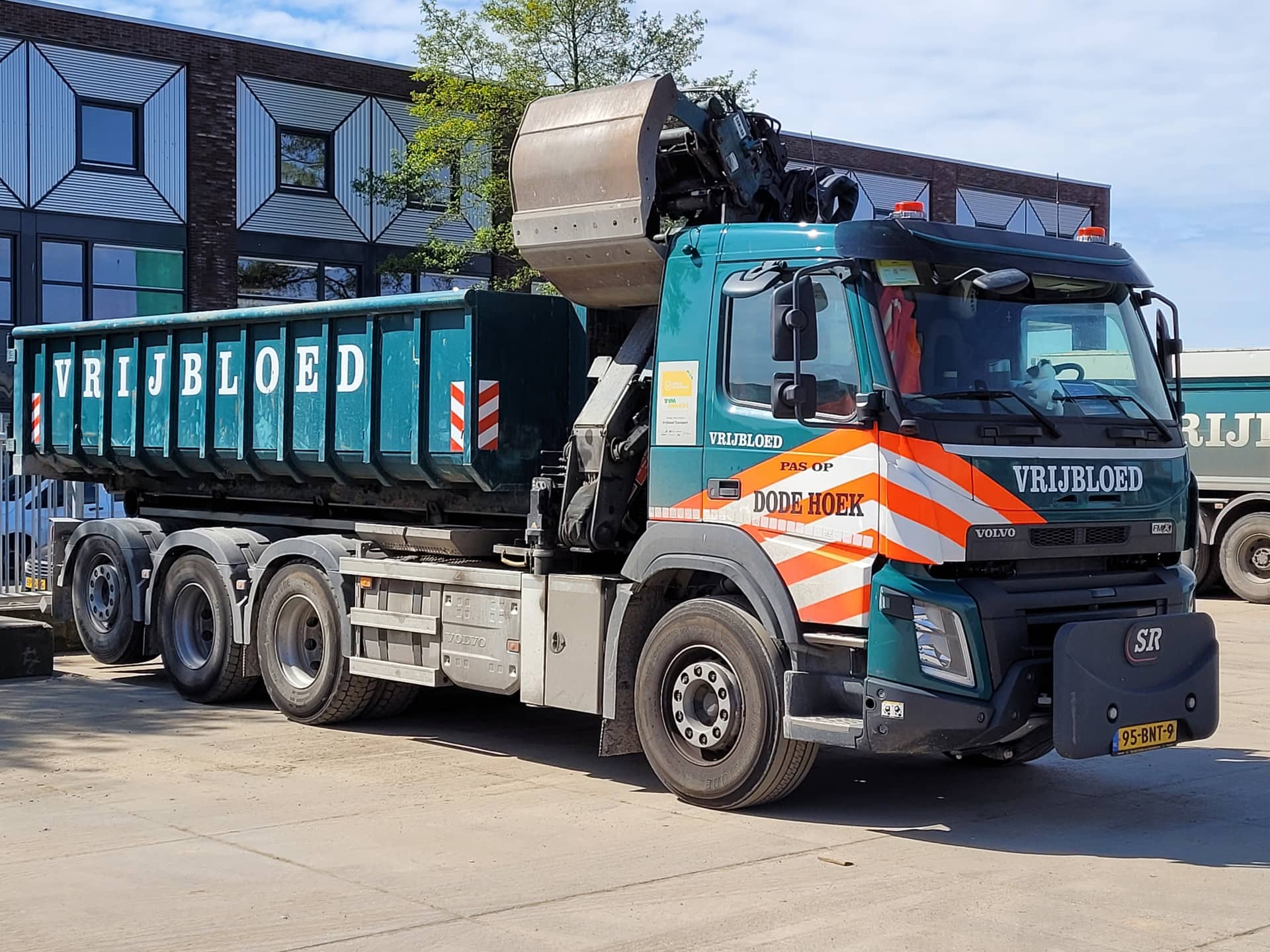 Vrijbloed Transport uit de Waarderpolder is een van de voorlopers in de aanschaf van elektrische vrachtwagens, die verhuurd worden in de huisstijl van de klant. Voor de kenners; op de foto nog een gewone vrachtwagen van het bedrijf.