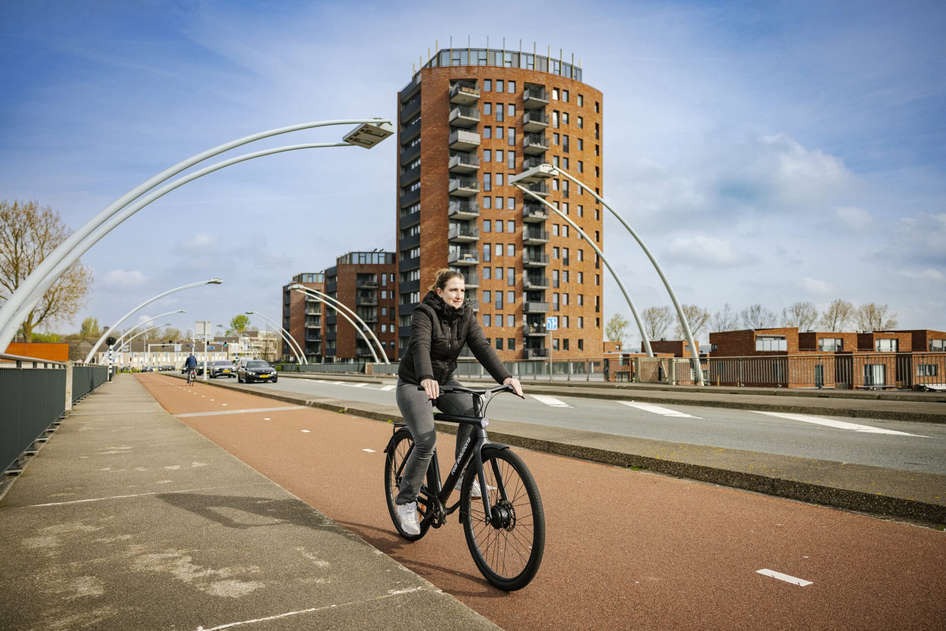 “Vooral nu er veel werkzaamheden aan de bruggen zijn en ik daar moeiteloos langs kan fietsen. Ook ben ik nu sneller op mijn werk; met de auto duurde het 8 minuten en met de fiets slechts 6 minuten. En dan te bedenken dat ik jarenlang bij een andere werkgever op de A. Hofmanweg werkte en altijd met de auto naar het werk ging.”