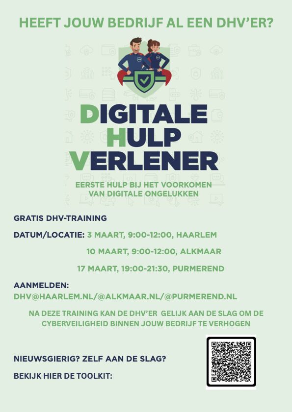 De (kosteloze) training, aangeboden door de gemeente Haarlem, wordt verzorgd door Maikel van Brandaris Cybersecurity (Van kwetsbaar naar weerbaar). Datum: dinsdag 3 maart 9.00-12.00 uur bij 3DMZ, Oudeweg 91-95.