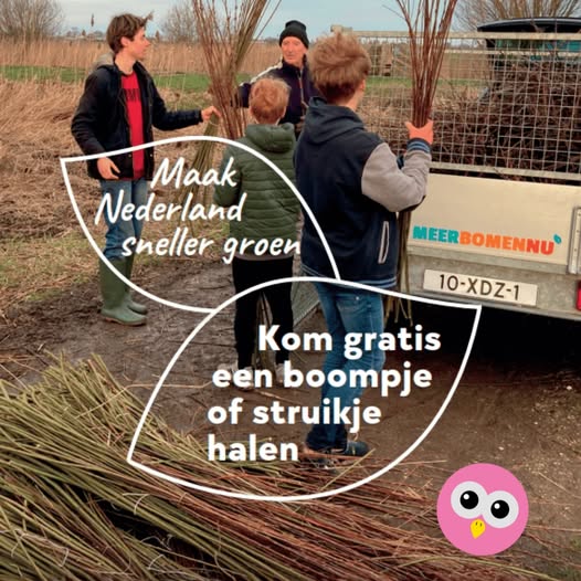 Kom een gratis boompje of struik halen en werk mee aan de vergroening van de Waarderpolder! Interesse? Stuur dan even een mail. Meer info op: Meerbomen.nu.