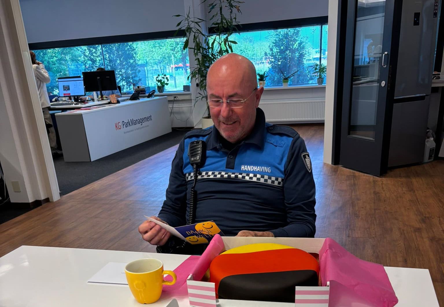 We wensen hem veel geluk met zijn pensioen.